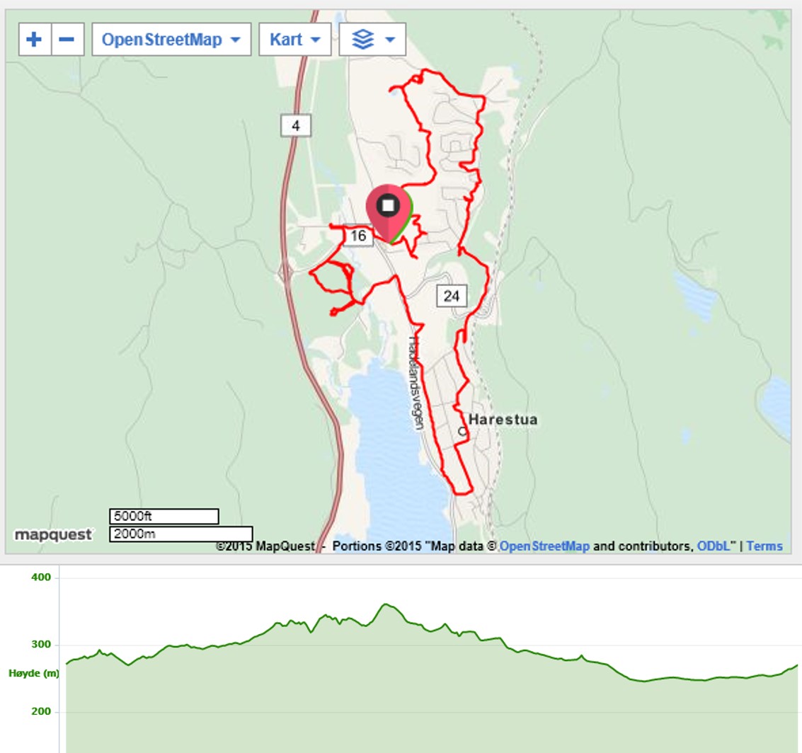 Det er en kjøretur på en time hjemmefra - over Romeriksåsen - til idrettsplassen like ved Harestua skole der jeg skulle starte fra. Det var ferietid og stille morgen både på idrettsplassen og på skolen, så jeg slapp å fake god form siden det ikke var tilskuere der likevel. Jeg startet derfor gående til hjertepumpa kom litt i gang. Litt under to timer tok det å besøke de 25 stolpene, en runde med mer jogging enn gåing og et par feilløpinger som bonus.